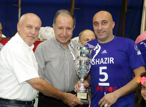 رئيس فريق قدامى دراغستور سيزار حرفوش يستلم كأس المركز الاول من نزيه يزبك واداريي التجمع 2015