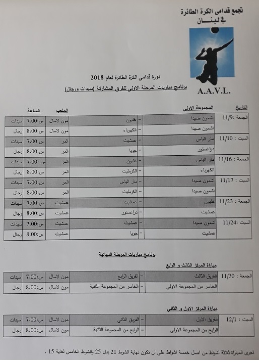 قدامى عمشيت 2018 26-11-2018 انطلقت دورة "تجمع قدامى الكرة الطائرة" في لبنان لعام 2018 تحت اشراف اتحاد اللعبة ولجنة التجمّع الرياضية المؤلفة من جاك باسيل، علي المقداد، ايلي ابي سليمان، نبيل زينون وشربل غانم. تشارك في الدورة الفرق التالية : السيدات: اشمون صيدا، غلبون، مار الياس وعمشيت. وقدامى الرجال: عمشيت، الكهرباء، جويا، اشمون صيدا، دراغستور 3 يو والكرمليت. وقسمت الفرق الى مجموعات كالآتي: - المجموعة الاولى -رجال: اشمون – الكهرباء – الكرمليت - المجموعة الثانية -رجال: عمشيت – دراغستور 3 يو – جويا صيدا - مجموعة السيدات: اشمون – غلبون – مار الياس – عمشيت وفي ما يلي النتائج الفنية: * على ملعب مون لا سال: فاز فريق قدامى رجال اشمون صيدا على فريق قدامى رجال كهرباء بيروت 3-0وقدامى سيدات اشمون على فريق قدامى سيدات غلبون 3-0 و قدامى سيدات مار الياس على فريق قدامى سيدات عمشيت 3-0 وفريق قدامى رجال دراغستور 3 يو على فريق قدامى رجال جويا صيدا 3-0 وعلى مجمع ميشال المر الرياضي: فاز فريق قدامى سيدات اشمون على فريق قدامى سيدات مار الياس 3-2 وفريق قدامى رجال الكرمليت على فريق رجال قدامى كهرباء بيروت 3-2 وفريق قدامى سيدات غلبون على فريق قدامى سيدات عمشيت 3-0 وفريق قدامى رجال اشمون على فريق قدامى رجال الكرمليت 3-0 وعلى ملعب عمشيت: فاز فريق قدامى سيدات اشمون على فريق قدامى سيدات عمشيت 3-0 وفريق قدامى رجال عمشيت على فريق قدامى رجال جويا صيدا 3-0 وفريق قدامى رجال دراغستور 3 يو على فريق قدامى رجال عمشيت 3-0 وستقام مباريات الدورين نصف النهائي والنهائي على ملعب نادي المون لا سال الجمعة والسبت المقبلين. |