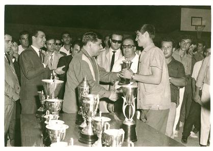توفيق مرعب يقدم الكأس لقائد فريق نادي عمشيت 1965