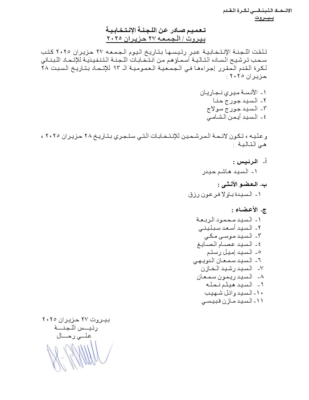 حزيران 2025 انتخابات اللجنة التنفيذية للاتحاد اللبناني لكرة القدم،