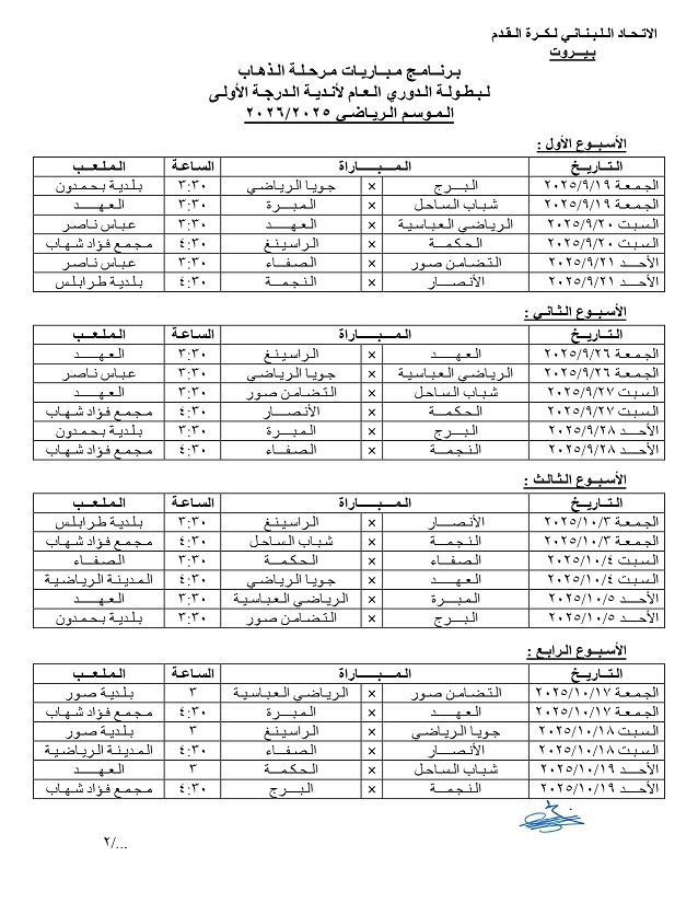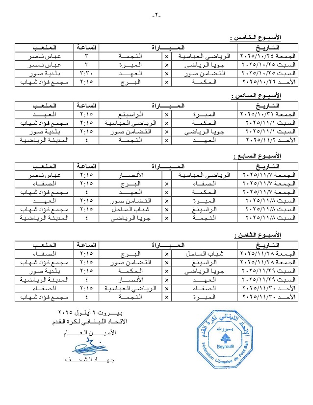 19 ايلول 2025 مباريات المرحلة الأولى من الدوري العام اللبناني