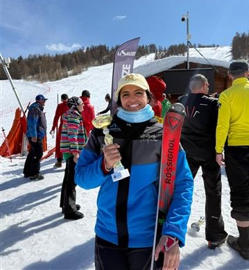التزلج واحتلت المركز الثالث في سباقي التعرج القصير واحرزت ميدالية